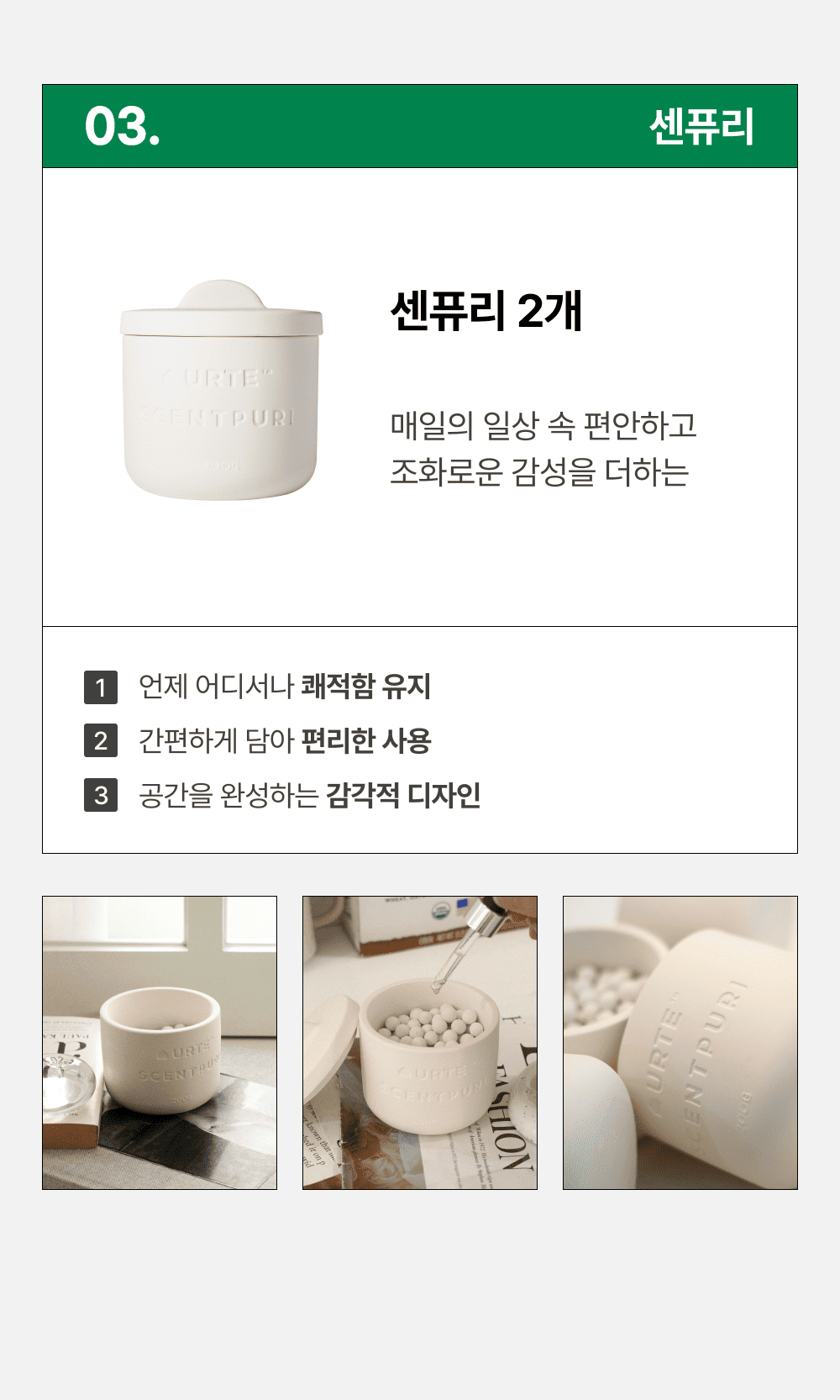 | 기능3. 100% 피톤치드 원액 함유, 상쾌한 피톤치드 향 |