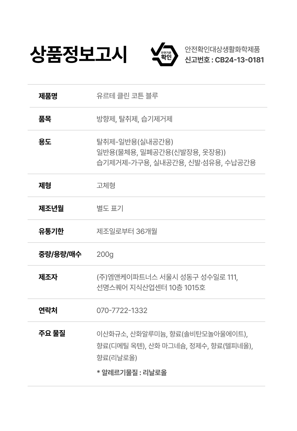 (예 : 식품, 화장품, 향수류, 음반 등)
