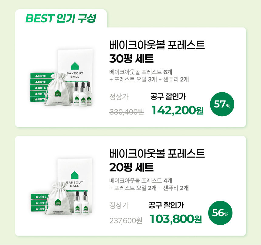 [오산 세교파라곤 입주민 전용 공동구매] 유르테 베이크아웃볼 포레스트 30/20평 세트SALE오늘출발